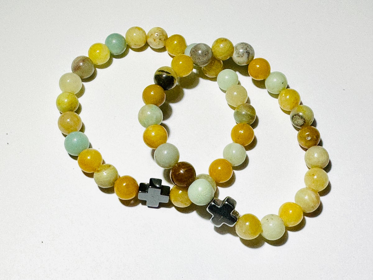 Ystävyys ranneke Amatsoniitti- keltainen Jaspis, sis. 2 korua