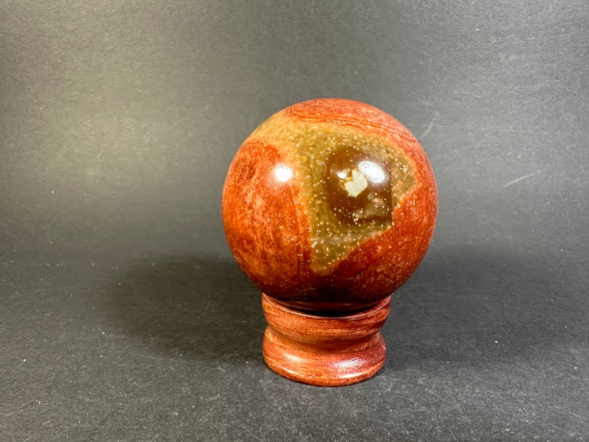 Polychrome Jaspis pallo. Upean värikäs kiillotettu pallo, jossa näkyy Polychrome Jaspiksen upeat sävyt. Monivärinen polychrome jaspis on tuli-elementin kivi, jota kutsutaan myös aavikkojaspikseksi. Se vahvistaa intohimoa, vitaalisuutta, toimintaa, luovuutta sekä syventää yhteyttä äiti-maahan. Hoitaa solar-plexuksen ja juurichakran energiaa. Pallon ovat yksilöllisiä värimaailmaltaan ja kuvioltaan, eikä toista samanlaista ole. Pallon koko on n. 57 mm, paino 252gr. Uniikkikappale, saat juuri kyseisen kuvassa näkyvän pallon